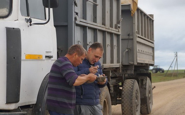 Машины и трактора с прицепами перевозят зеленую массу, на ферму «Рымки-2», где ее сгружают в траншею и трамбуют. Заполненную траншею укрывают двумя слоями пленки. Сбалансированный корм для коровок и бычков готов. Кукуруза в ОАО «Орля» уродила: 426 центнеров с гектара. Уже убрана половина из засеянных 680 гектаров. Обед в поле. Чтобы люди были сыты горячие обеды, приготовленные в столовой агропредприятия, привозят в поле. Причем, хозяйство компенсирует семьдесят процентов стоимости питания.